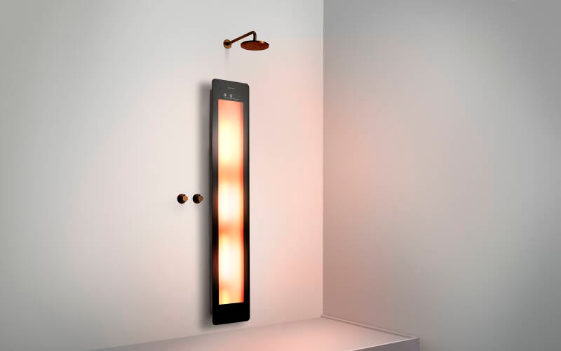 Sunshower Round gebruikt haar restwarmte om de badkamer tijdens gebruik ervan op te warmen, gemiddeld 2º Celsius. Zo verwarmt het zowel jou als je badkamer efficiënt.